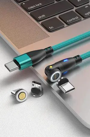 540º USB Type C 3-in-1 Fast Charging Cable with Magnetically Interchangeable Tips for Micro USB, USB Type C, and iProducts (Green)
