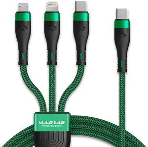 6 in 1 Multi Charging Cable [3Pack 4FT] Nylon Braided Multi Fast Charging Cord USB A/C to Phone USB C/Micro USB/i-P Connector Universal Multiple Phone Charger Cable for Cell Phones