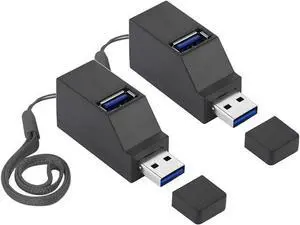 USB Port Splitter,3 Port USB 2.0 hub Dock [2 Pack] Mini USB Hub, 3 Port 3.0 USB Hub High Speed Splitter Plug and Play, USB Splitter Adapter Portable for PC, Laptop - Black