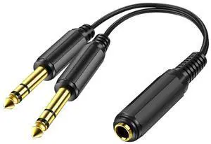 6.35mm TRS Female to Dual TS Male Y-Splitter Cable 1/4" Stereo to Mono Insert Cable, for Effect Loop, Signal Routing & Stereo Splitting