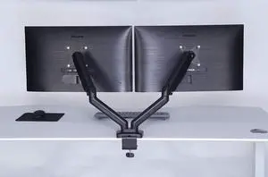 ApexDesk Dual Monitor Arm Desk Mount Adjustable Height Gas Spring VESA Mount with C Clamp & Mounting Base Computer Monitor Stand for Screen up to 32 inch Holds up to 20 lbs., Black (DMM-24)