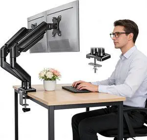 Monitor Desktop Mounting Bracket Dual Screen Monitor Mount Arm Adjustable Gas Spring Monitor Desk Mount Stand 17"-32" Dual Monitor Arm Mount with VESA Mount 75/100mm Monitor Arm Computer Monitor Stand
