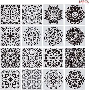 16pcs/set Mandala Stencils DIY Drawing Template Wall Painting for wood Tiles Rock Home Decoration 15x15cm