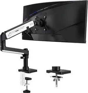 ARES WING Single Monitor Arm for 17-40 Inch Flat Curved Ultrawide Screens Up to 26.5lbs, Fully Adjustable Single Monitor Mount, C-Clamp & Grommet Base, 75/100 Vesa Mount, Black