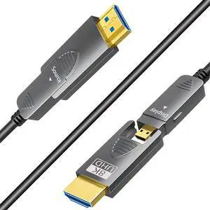 50ft 8K Fiber Optic HDMI Cable, Micro HDMI to HDMI 2.1, Detachable Type A+D, 48Gbps Ultra Speed, HDR, 3D, eARC, in Wall CL2 / CL3 Rated, Slim and Flexible for PS5 Project TV 15m / 50ft