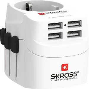 SKROSS | 1.302461 | Pro Light USB (4xA) | Universal Travel Adapter 2 & 3 Pin with 4 USB Ports 4.8A Voltage and Power: 100V-700W/250V-1750W Suitable for PC and Hair Dryer