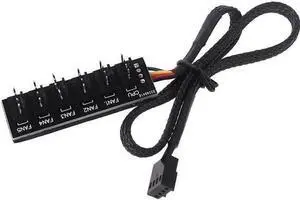 DIXSG Milue PWM Fan Hub PC Fan Splitter 6 Way Sleeved Power Supply Cable Adapter Internal Motherboard Fan Power Extension Cable Cord Pwm Fan Hub Splitter