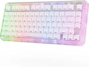 KiiBOOM Jade75 75% CNC+UV Resin Molding Mechanical Keyboard with RGB Backlits, BT5.0/USB-C/2.4GHz Wireless Gaming Keyboard, QMK&VIA Programmable, Hot-Swappable for Windows/Mac/Linux (White)