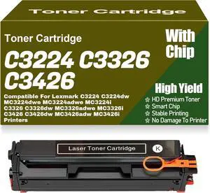 for Lexmark C3224 C3326 C3426 MC3224 MC3326 MC3426 Toner Cartridges with Chip Compatible for Lexmark C3224dw MC3224i C3326dw MC3326i C3426dw MC3426i Printers,C3224-Black