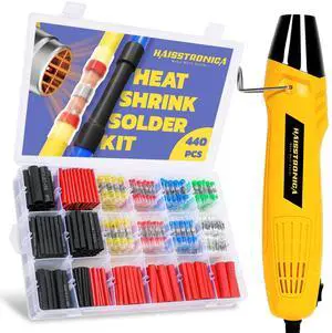 haisstronica 440 PCS All in One Set with Solder Seal Wire Connectors,3:1 Heat Shrink Tubing and Heat Gun,Solder Sticks Wire Terminals Electrical Connectors for Automotive, Marine, Trailer Wiring