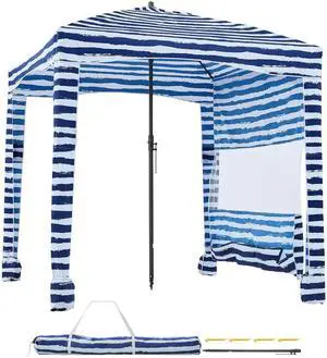 Beach Cabana, 6 x 6 ft Beach Canopy with Side Wall, UPF 50+ Protection Easy Setup Cabana Tent with Sand Pockets, Large Outdoor Portable Shade, Sun Shelter Umbrella for Whole Family & Friends