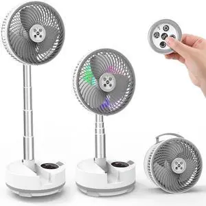 Foldable Oscillating Pedestal Fan with Remote, 8" USB C Rechargeable 20000mah Battery Fan with LED Colorful Lights, Portable Floor Standing Fan Camping Fan for Bedroom Office Travel White