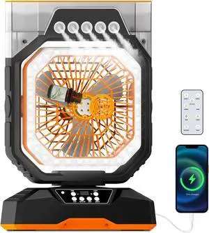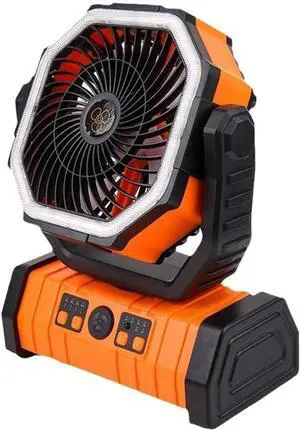 Asixxsix High Performance Rechargeable Camping Fan with LED Lantern, 10400mAh Battery, Long Lasting Cooling, for Outdoor Activities (Orange)