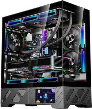 UNIWAY GAMING Aurora Series - Ryzen 7 5700X, RTX5060, 32GB RAM, 1TB NVMe SSD, Build-in LCD Screen, AIO Liquid Cooler, Windows11 Pro, AIReady, 1Year Warranty  - Black RTX5070 Black