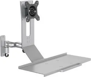 Monitor and Keyboard Wall Mount, Stand/sit Workstation, with Pneumatic Arm, Load 10kg, with 210 * 600mm Foldable Keyboard Tray, for 15-32 Inch Single Screen(Black)