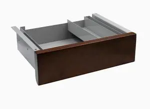 Features: Customizable to match Desky sit-stand desk, Dual-level storage for office essentials and personal items, Easy installation in minutes, Declutters desktop, frees up workspace, Premium FSC wood front panel with hidden knife edge handle adds minimalist touch, Finishes match Desky sit-stand desks for sleek look, 10-year warranty protects against manufacturing defects, Smooth sliding mechanism for easy access, Hanging design provides additional space for notebooks and other items, Strong steel construction and powder-coated finish ensure durability.