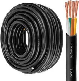 14AWG 4-Conductor Control Cable for Mini Split Air Conditioner - Heavy Duty Bare Copper Wire with PVC Jacket, 300V Rated, 14 Gauge for HVAC Systems 50FT