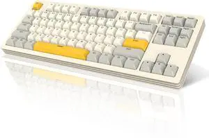 A.JAZZ AKC087 Mechanical Keyboard, Tri-Mode Connection, BT5.0 Wireless Keyboard, Multi-Layer Metal Base, Compact 87 Keys Layout,TKL,Retro Tricolor,Hotswappable Rechargeable RGB Keyboard, for Win/Mac