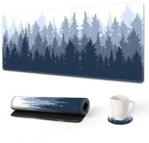 JVFYI Extended Gaming Mouse Pad, XL Large Keyboard Mouse Mat Desk Pad with Stitched Edges, 35x15.7inch Durable Non-Slip Base Mousepad for Home Office, Misty Forest