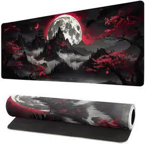 Japan Japanese Yin and Yang Koi Fish Black and Red Mouse Pad XL Extended Mouse Mat Non Slip Rubber Base Stitched Edge Gaming Pc Large Mice Pad 31.5 X 11.8 Inch