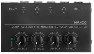HA400 l Stereo Audio Headphone Amplifier, 4 Channels, For PC, Guitar, Sound Mixer - EU Plug Version