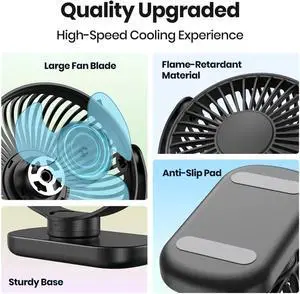 Portable Desktop Fan with 1800mAh Battery USB Rechargeable Fan 3 Speed Long Lasting Cooling Travel Outdoor Use