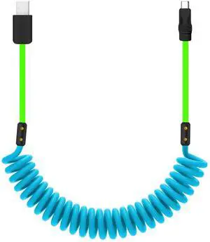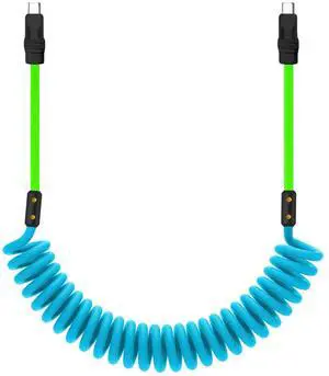 chubbycable Curly Chubby - 240W Coiled USB C Cable Spring Retractable Fast Charging Cable for Car Compatible with CarPlay, Android Auto, Blue+Green, Type-C to Type-C, 2.29FT-3.6FT