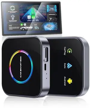 Black 2 in 1 Wireless Carplay Android Auto AI Box Car Play Adapter USB Port Dongle for OEM Wired CarPlay Upgrade