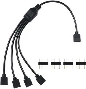 WISDUM Splitter Cable 5V 3Pin Addressable RGB 1 to 4 Splitter Cable with Male Pins for Computer Chassis, CPU Cooler and 5V ARGB Fan
