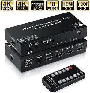 Specifications: IDATA HDMI-EA lets you extract the audio signal from the HDMI source and convert it to analog RCA SPDIF + R / L audio.