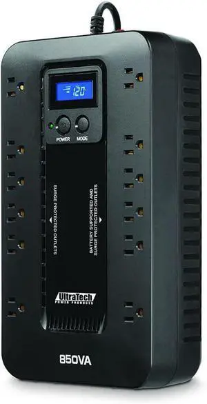 0E-850V8LCD Compact UPS; 850VA/510W; 120VAC; 8 Grounded Outlets, 4 with Battery Backup; 4 Transformer Sized Outlets, 2 with Battery Backup; LCD Display; HID-Compliant USB Connectivity Port