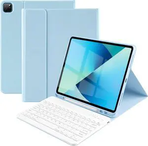 BONAEVER iPad Air 13 inch M3 2025 M2 2024 Case with Keyboard, Detachable Wireless Keyboard Case for iPad Pro 12.9 inch 6th 5th 4th 3rd Generation 2022 2021 2020 2018 with Pen holder Light Blue