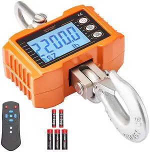 VEVOR Digital Crane Scale, 2200 lbs/1000 kg, Industrial Heavy Duty Hanging Scale with Remote Control, Cast Aluminum Case & LED Screen, High Precision for Construction, Factory, Farm, Hunting (Orange)