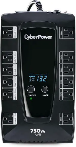 CyberPower AVRG750LCD Intelligent LCD UPS Battery Backup and Surge Protector, 750VA/450W, 12 Outlets, AVR, Compact, UL Certified