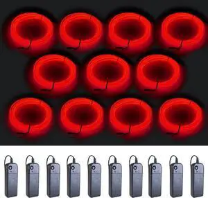 MaxLax EL Wire red 10-Pack, 16.4ft/5m Neon Light Wire with Noise Reduction and Battery Pack