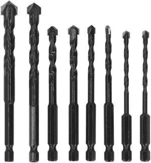 8 Buah/Set Kit Set Mata Bor Hitam Shank Hex 6.35Mm Karbit Semen Bor Batu untuk Beton Ubin
