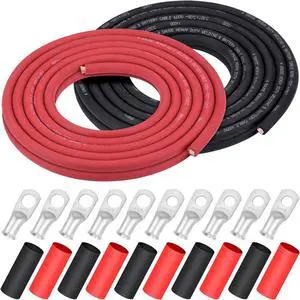 6 Gauge 6 AWG 15 Feet Red + 15 Feet Black Welding Battery Pure Copper Flexible Cable + 10pcs of 3/8" Tinned Copper Cable Lug Terminal Connectors + 3 Feet Black Heat Shrink Tubing