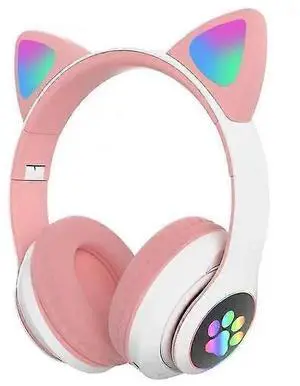 STN281019 Foldable Cat Ear Bluetooth Headphones - LED Lights, 10H Play, Noise Cancel