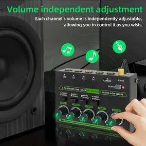 Stereo 6-Way Passive Mixer RCA Portable Audio Mixer 6 in 2 Out Stereo Distributor Volume Control No Required