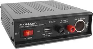 Universal Compact Bench Power Supply - 9 Amp Regulated Home Lab Benchtop AC-DC Converter Power Supply for CB Radio, HAM w/ 13.8 Volt DC 115/230V AC Switchable, USB, Cigarette Lighter - Pyramid PSV90