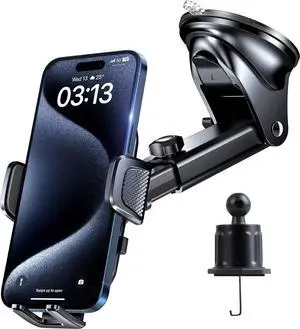 Universal Phone Holder for Car, 3 in 1 Suction Cup Car Phone Mount for Windshield/Dashboard, Thick Case & Big Phones Friendly Smartphone Holder Compatible with All Cellphones