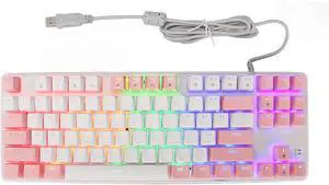 Computer Keyboard, Blue Switch USB Wired Mechanical Gaming Keyboard for Laptop (White and Pink)