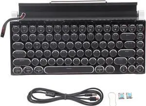Mechanical Keyboard, 83 Keys Retro Typewriter Mechanical Keyboard with Metal Round Cover for Tablet (Wood Grain Color)