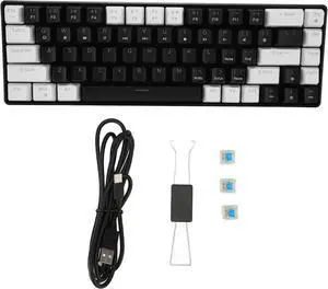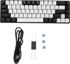 Mtlavishness 68 Key Mechanical Keyboard RGB Light Double Color Gaming Keyboard for Home Dormitory Internet Bar (Black White)