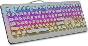 CHICHEN Retro Steampunk Typewriter-Style Gaming Keyboard, Blue Switches,Pure White Backlight, USB Wired, for PC Laptop Desktop, Stylish Pink Mechanical Keyboard Round Keycaps