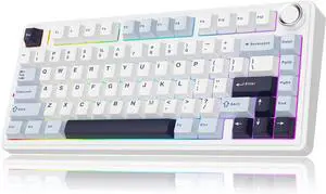 MechLands Aula F75 PRO 75% Wireless Gaming Keyboard, Gasket Mechanical Custom Keyboard with Five-Layer Padding, Bluetooth/2.4GHz/USB-C, Hot Swappable, Knob, RGB, Reaper Switches (White Blue)