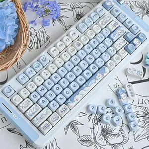Mxtroml Cute MOA Keycaps, 132 Keys, Blue White, Thick PBT, Suitable for Cute Style Mechanical Keyboards