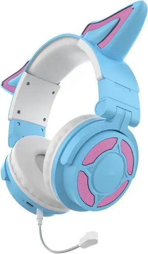 CORN Wireless Bluetooth 5.3 Headset Fox Cat Ear Headphones Luminescence Esports Game Live Big EarMask APP Intelligence Earphones Blue