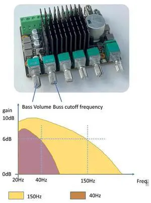 TPA3116 2X50w+ 100W Subwoofer Power Amplifier Bluetooth 2.1 Adjustable Frequency Divider Division Point Virtual Surround DC