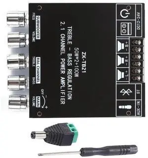 ZK-TB21 2.1 Bluetooth digital power amplifier module with adjustable bass and treble. Low bass speaker. TPA3116D2 original chip. ZK-MT21 Power Amplifier Board